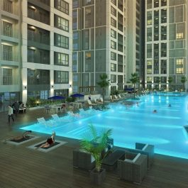 - Hồ bơi tràn bờ nội khu và hồ bơi 4 mùa trên tầng 2. Hạng mục này có tổng diện tích lên tới 25000m2.